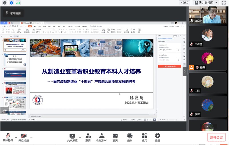 为适应职业本科教育发展的新形势和经济社会发展对人才培养提出的新要求,全面推进学院的教育改革和发展,5月4日下午,雷竞技官网re邀请机械工业教育发展中心主任、中国机械工业联合会教育培训部主任、全国机械职业教育教学指导委员会主任委员陈晓明以腾讯会议形式作《从制造业变革看职业教育本科人才培养——面向装备制造业“十四五”产教融合高质量发展的思考》专题报告,报告由raybet下载安装党委常委、副校长潘旭海主持,电气学院全体教职工及兄弟学院老师聆听了报告。