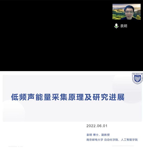 6月1日下午,应雷竞技官网re邀请,南京邮电大学自动化学院副教授、硕士生导师袁明博士以腾讯会议形式为我院师生作“低频声能量采集原理及研究进展”专题报告,报告由李坡博士主持。