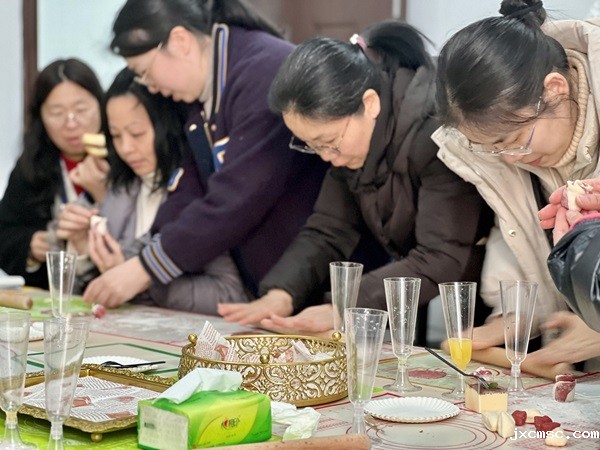 在烘焙师的指导下,女教职工们纷纷化身为烘焙小能手,亲手制作面点。她们一边认真聆听烘焙师的讲解,一边动手实践,将一块块普通的面团逐渐变成了精美可口的艺术品。经过一个多小时的努力,一个个外观精美、色彩斑斓、装饰巧妙的面点便制作完成了。