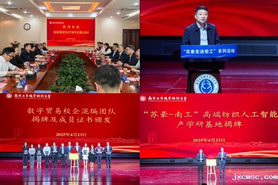 在数字贸易领域合作取得突破的同时,双方在高端纺织人工智能领域的产学研合作也结出硕果。徐雨祥与高宏彦共同为“苏豪-南工”高端纺织人工智能产学研基地揭牌,该基地的建立将聚焦人工智能与纺织业融合,推动技术创新与产业升级,为培养具有创新精神和实践能力的复合型人才提供有力支撑。