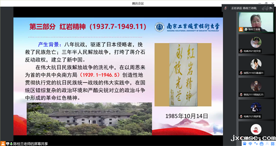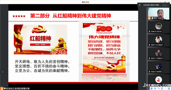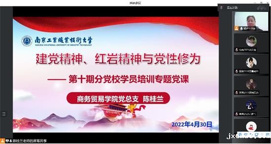 4月30日晚,商贸学院党总支书记陈桂兰老师为本期191名师生学员及学院63名学生党员、111名入党积极分子讲授了《建党精神、红岩精神与党性修养》线上专题党课。